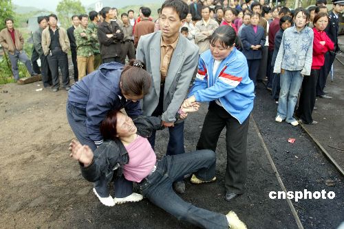 被埋井下至今生死不明的礦工毛建民的兩位哥哥就在這里整整守候了一天一夜。