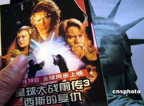 | 2005年5月23日,一位上海影迷拿著《星球大戰(zhàn)前傳3》的電影票。這是個注定屬于盧卡斯和其星戰(zhàn)帝國的日子。美國當(dāng)?shù)貢r間5月19日,《星球大戰(zhàn)前傳3》上映首日票房破5000萬美元,世界電影史上的單日票房紀(jì)錄就這樣被刷新,同時令去年6月《蜘蛛俠2》創(chuàng)造的4040萬美元的單片首日票房紀(jì)錄作古!缎菓(zhàn)前傳3》以數(shù)字向世人詮釋了一部好萊塢真正巨片的商業(yè)價值。作者:紹常