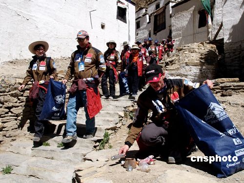 | 5月26日,“2005地球第三極珠峰大行動(dòng)”志愿者一行,在當(dāng)?shù)夭孛窈陀慰蛡児餐瑓⑴c下,對(duì)位于西藏定日縣境內(nèi)海拔4400米的協(xié)格爾曲德寺進(jìn)行了清掃和環(huán)保宣傳活動(dòng)。協(xié)格爾曲德寺創(chuàng)建于1385年,是一座依山而建的古寺。一上午的清掃工作成果頗豐,沿路的山洼里有一些多年無人問津的“死角”,滿是鐵皮手電筒,廢棄電池,鋁制飲料罐等對(duì)環(huán)境危害極大的不可降解性垃圾。作者:王驥