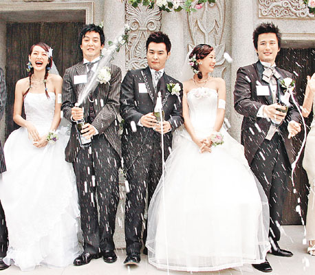 四人原本已私交甚篤,如今合作闖樂壇,感情再跨進一步,昨日更公然“打情罵俏”,子維笑說﹕“我想同Daniel結(jié)婚!盌aniel則回應(yīng)﹕“看你的鉆石戒指有多大啦。”昨日四人本來各有女伴扮新娘,因徐子淇仍身在英國求學(xué),Daniel全程唱獨腳戲,不及其他三子“艷福無邊”。