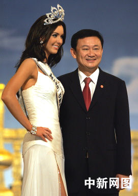 圖:2005環(huán)球小姐冠軍與泰國總理他信合影
