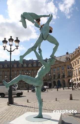 | 女藝術(shù)家安娜施羅米的一組名為“歐洲神話”的雕塑,目前正在巴黎極富盛名的旺多姆廣場展出。展覽引用一句名言“只有美能拯救世界”。圖為展覽中最為高大的雕塑作品,題為“奧林匹克精神:挑戰(zhàn)”。據(jù)主辦者稱,這件作品擬贈給中國,為2008年奧運(yùn)會增色。作者:鐘誠