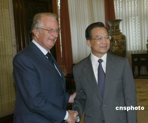 六月七日,中國國務(wù)院總理溫家寶在北京中南海會見來訪的比利時國王阿爾貝二世。作者:史利