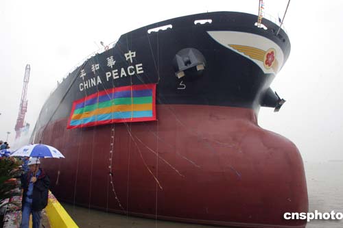“中華和平”號是臺灣船東直接在祖國大陸訂造的第一艘船。十年前,因海峽兩岸無法實現(xiàn)直接的經(jīng)貿(mào)往來,臺灣遠東倉儲公司曾通過日本三菱商社,間接地向江南造船廠訂造了一艘七萬噸級巴拿馬型散貨船“遠涵”號。二00三年六月,在上海外高橋造船公司成功交付第一艘出口船即香港泰昌祥航運公司訂造的十七點五萬噸好望角型散貨船“祥瑞”號之際,“中國航運股份有限公司”于四日內(nèi)連續(xù)向該船廠訂造了兩艘同型船,今天命名交付的“中華和平”號便是其首制船,揭開了海峽兩岸航運業(yè)和造船業(yè)在新世紀共同發(fā)展、繁榮的嶄新一頁。