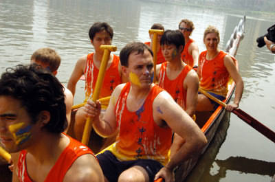 龍舟賽的策劃人之一、南京金絲利喜來(lái)登酒店副總經(jīng)理黃凡賽前表示,已舉辦了4屆龍舟賽,每年都會(huì)遇到一個(gè)難題,這就是人們對(duì)比賽的成績(jī)?cè)絹?lái)越關(guān)注,競(jìng)技要求越來(lái)越濃烈!捌鋵(shí),這與龍舟賽‘娛樂(lè)’的宗旨是相違背的。知道為什么有一些參賽隊(duì)‘不遠(yuǎn)千里’來(lái)到南京參加比賽嗎?2003年著名的雙語(yǔ)雜志THAT'S從北京飛到南京,今年安徽的圣戈班、徐州的家樂(lè)福也組隊(duì)參加。因?yàn)椴煌诤香枇_江等地競(jìng)技性的龍舟賽,喜來(lái)登的龍舟賽是給合資、外資企業(yè)提供一個(gè)溝通的平臺(tái),主要是為了交流和娛樂(lè)。其實(shí),最大的特色就是兩個(gè)字‘好玩’。我們將一如既往緊扣‘好玩’的主題,發(fā)展龍舟賽!(柏剛)