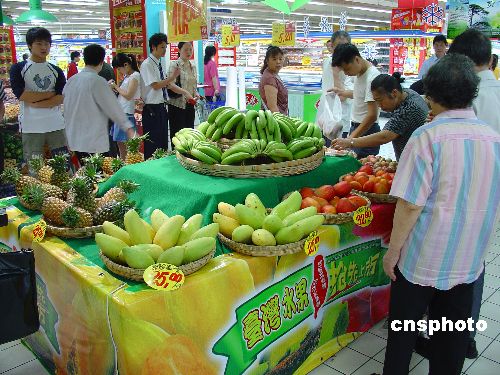 6月15日上午八點(diǎn),首批通過常規(guī)貿(mào)易方式登陸長沙的臺灣水果在星城銷售。長沙市民在長沙就可以買到土生土長的臺灣水果,圖為臺灣水果一上市就受到長沙消費(fèi)者的熱捧。作者:李思之