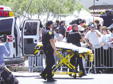 為了防止意外,圣塔巴巴拉縣警局派出約50名警察到現(xiàn)場,他們負(fù)責(zé)維持法庭停車場內(nèi)的公共安全。法庭外的馬路上,約有40名圣塔瑪瑞亞市警局的警察維持秩序。為防止最壞的事情發(fā)生,警方調(diào)用了裝甲防暴車。