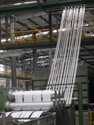 福建長樂金綸石化廠,正在生產(chǎn)的纖維如玉帶飛舞。