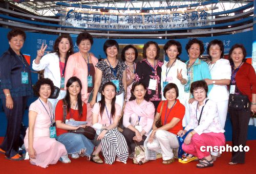以臺灣高雄婦女會理事長聶惠如女士(后排左四)為團(tuán)長的臺灣婦女總會代表團(tuán)一行在六月十七日參加了第二屆海峽婦女創(chuàng)業(yè)論壇后于十八日來到福州金山展覽城參觀第三屆中國·福建項(xiàng)目成果交易會并留影。作者:劉可耕