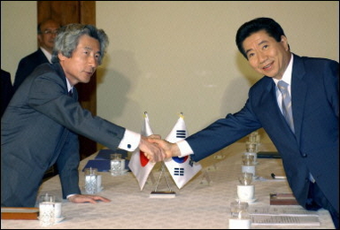 中新網(wǎng)6月20日電 據(jù)日本共同社報(bào)道,韓日首腦會(huì)談今天在韓國(guó)舉行,韓國(guó)總統(tǒng)盧武鉉在會(huì)談結(jié)束后舉行的記者招待會(huì)上暗示,他與日本首相小泉純一郎圍繞著歷史問(wèn)題進(jìn)行了激烈交鋒。