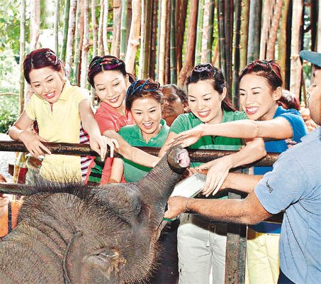 中新網(wǎng)6月21日電 據(jù)星島日報報道,20位準港姐昨日繼續(xù)在斯里蘭卡進行拍攝,佳麗們被安排往“大象孤兒院”探訪,其間鄧上文與大象合照時,竟被大象撩腳,嚇得她馬上彈開﹔至于葉翠翠則盡顯愛心,除了向大象喂奶外,見到現(xiàn)場的野狗時亦流露憐憫之色。