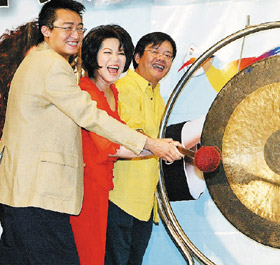 昨天蔡琴當(dāng)起了媒婆,帥哥律師謝震武擔(dān)任見證人,見證果陀劇團(tuán)與大陸上海星世代娛樂公司結(jié)緣。蔡琴與果陀藝術(shù)總監(jiān)梁志民,還有上海星世代娛樂董事長徐毅簽約,將“跑路天使”引進(jìn)內(nèi)地,新名稱“跑路救天使”引起大陸一陣狂熱,北京、上海共5場演出,目前已經(jīng)開放售票,據(jù)了解,票房比蔡琴去年的個唱還暢銷,而4萬人次的演出也將挑戰(zhàn)蔡琴的身體狀況。蔡琴表示,由于視力不佳,她無法與舞臺上的其它演員直接對戲,所以必須彩排更多次,一個人不斷重復(fù)練習(xí),將所有的走位及對話統(tǒng)統(tǒng)都背起來,比起一般正常情況下演出,更加辛苦,蔡琴開玩笑說:“我的票價要調(diào)漲啦!”