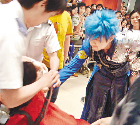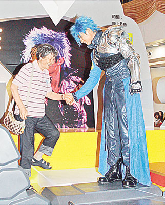 前晚活動(dòng)現(xiàn)場(chǎng)布置成紅館一樣,以機(jī)械人“高達(dá)之手”作舞臺(tái),現(xiàn)場(chǎng)又?jǐn)[放基仔曾穿過(guò)的“戰(zhàn)衣”,基仔以“藍(lán)戰(zhàn)士”造型出現(xiàn),吸引超過(guò)二千人圍觀,人群更把商場(chǎng)的七層樓重重包圍,令現(xiàn)場(chǎng)密不透風(fēng)。基仔于活動(dòng)上與歌迷大玩游戲,又獻(xiàn)唱一曲《傷追人》。至“影相會(huì)”正式開(kāi)始,歌迷紛紛到臺(tái)上與基仔合照,他對(duì)一位七十三歲的翁姓婆婆特別照顧,令歌迷吃醋尖叫;杏旨磮(chǎng)宣布演唱會(huì)CD和VCD合共已賣出“雙白金”成績(jī),氣勢(shì)驚人。