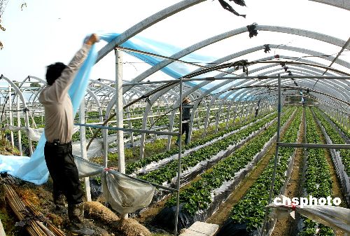 | 2005年6月29日,據(jù)財政部部長金人慶近日披露,到目前為止,已經(jīng)明確免征農(nóng)業(yè)稅的省份新增山西、內(nèi)蒙古等19個,加上去年已經(jīng)免征和基本免征農(nóng)業(yè)稅的8個省份,2005年可提前實現(xiàn)免征農(nóng)業(yè)稅的省份將達到27個,其余的河北、山東、廣西、云南4省(區(qū))2005年有217個縣(市)也將免征農(nóng)業(yè)稅。今年享受免征農(nóng)業(yè)稅的農(nóng)民將達到8億人。圖為寧波農(nóng)村一蔬菜專業(yè)戶正在為大棚更換農(nóng)膜。作者:張和平