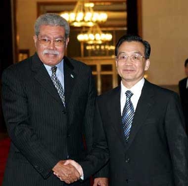 在談到中國與南太島國經(jīng)貿合作時,溫家寶說,為加強與斐濟等南太國家的經(jīng)貿往來,中方倡議建立“中國━太平洋島國經(jīng)濟發(fā)展合作論壇”。中方愿與斐方就此保持溝通與合作,推動該論壇盡早啟動。