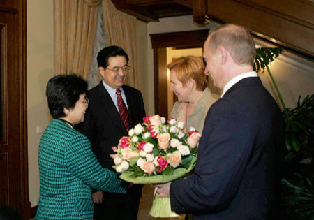 中新社莫斯科六月三十日電(記者齊彬)當(dāng)?shù)貢r(shí)間六月三十日晚,中國(guó)國(guó)家主席胡錦濤和夫人劉永清出席了普京總統(tǒng)夫婦專門為他們到訪在莫斯科郊外總統(tǒng)別墅舉行的家宴。