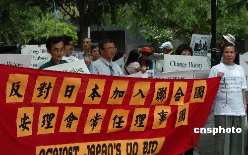 圖:聯(lián)合國廣場舉行示威反對日本“入!