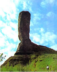 據(jù)測(cè)量,磬錘峰(包括山基)高59.42米,棒槌高38.29米,重約16000噸。鬼斧神工的磬錘峰,身臨危崖絕頂之上,矗立于山嶺之中,被億萬(wàn)年的歲月之刀、時(shí)光之劍、心靈之鑿,鐫為倚天撐地的一柱奇峰,是世間絕有的。