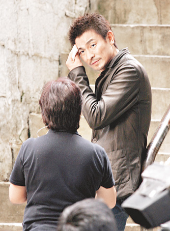 中新網(wǎng)7月4日電 據(jù)香港媒體報(bào)道,劉德華與楊采妮(Charlie)昨日于中環(huán)趕拍余偉國新戲《再說一次我愛你》,華仔在造型方面可謂嘔心瀝血,不停留須及剃須配合角色需要外,還在攝氏三十多度高溫下穿皮褸及黑西裝開工,雖然外表有型,但卻熱得汗流浹背。
