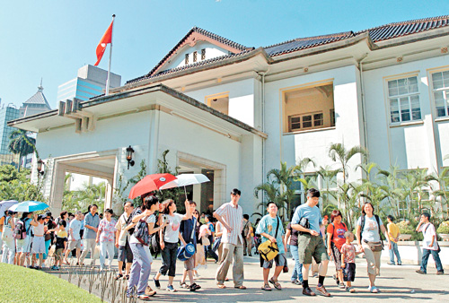 因為人流過多,警方更一度實施人流管制措施,以控制在場人士秩序。雖然在烈日當(dāng)空下排隊輪候,但不少市民都表示值得,因禮賓府的建筑及裝飾都富有特色,還可以在這里欣賞到昔日董建華接待貴賓的照片,所以就算汗流浹背,都沒有任何怨言。