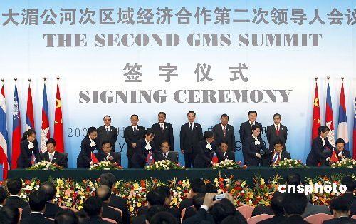 七月五日,大湄公河次區(qū)域經(jīng)濟(jì)合作第二次領(lǐng)導(dǎo)人會議在昆明召開,大湄公河次區(qū)域領(lǐng)導(dǎo)人在會后參加了合作簽字儀式。作者:廖文靜