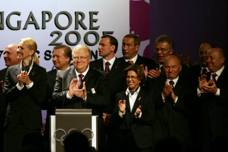 7月6日上午,莫斯科申奧代表團(tuán)在國(guó)際奧委會(huì)委員前進(jìn)行了申奧陳述。在陳述中,他們強(qiáng)調(diào)了其具有特色的“奧運(yùn)河”的創(chuàng)舉。圖為該國(guó)申奧代表團(tuán)成員鼓掌。圖據(jù)路透社