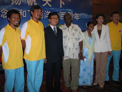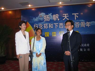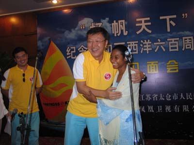 去年8月8日,由鳳凰衛(wèi)視的四位隊員駕駛的鳳凰號單桅帆船啟程,沿著鄭和寶船的路線去探尋鄭和的足跡。他們于今年3月16日抵達(dá)鄭和船隊的終點—肯尼亞,并在當(dāng)?shù)氐奶皆L中,發(fā)現(xiàn)了鄭和船隊水手的后裔、18歲的烏瓦瑪卡•沙里夫,并對她的家庭進(jìn)行了追訪和報道。