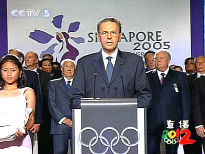 主辦城市選舉的懸念留到了最后一輪,由倫敦“決斗”同樣強大的巴黎。在這輪的投票選舉中,雙方沒有讓國際奧委會主席羅格難堪的戰(zhàn)成平手,而是高下立分。在經過一段讓人幾乎窒息的等待之后,一位華裔新加坡女孩把放有結果的信交給了羅格。羅格在感謝了東道主新加坡民眾、此前提出申請的國家和五個候選國家后,向世人大聲宣布:國際奧委會決定,把第30屆奧運會的主辦權交給倫敦!