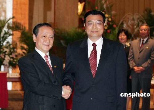 中共遼寧省委書記李克強(qiáng)七月八日在大連會(huì)見并宴請新黨主席郁慕明率領(lǐng)的臺(tái)灣新黨“民族之旅”訪問團(tuán)。作者:毛建軍