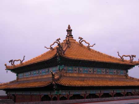 圖文:承德須彌福壽之廟主殿上的屋頂金色行龍