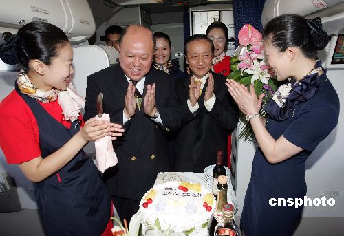 圖:南航送蛋糕祝賀新黨訪問團(tuán)成員生日