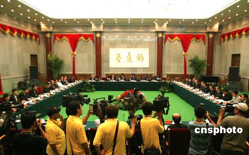 七月十日,中共中央臺灣事務(wù)辦公室主任陳云林與新黨主席郁慕明在北京舉行會談。作者:廖文靜