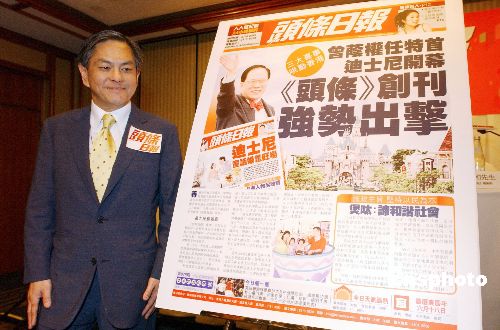 | 香港星島新聞集團(tuán)12日推出發(fā)行量40萬份最大的免費(fèi)報(bào)紙--《頭條日?qǐng)?bào)》。為配合上班族的生活節(jié)奏,《頭條日?qǐng)?bào)》篩選每日爆炸性的信息精華作明快報(bào)道,令讀者在上班前即能夠掌握當(dāng)天的時(shí)事脈搏。作者:洪少葵