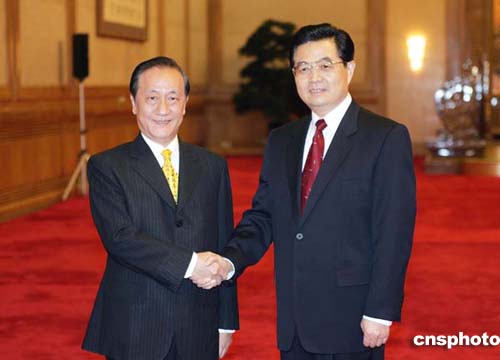 中新網(wǎng)北京7月12日電(記者邢利宇)自人民大會堂現(xiàn)場報道:今天下午三時許,中共中央總書記胡錦濤在人民大會堂會見了由新黨主席郁慕明率領(lǐng)的新黨紀(jì)念抗戰(zhàn)勝利六十周年大陸訪問團。(完)