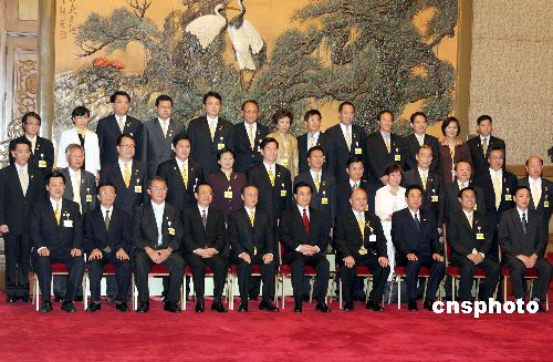 中共中央總書記胡錦濤七月十二日在北京人民大會(huì)堂會(huì)見(jiàn)臺(tái)灣新黨主席郁慕明率領(lǐng)的臺(tái)灣新黨“民族之旅”訪問(wèn)團(tuán)時(shí),與代表團(tuán)一起合影。作者:毛建軍