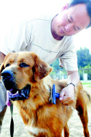 藏獒在新環(huán)境里極其敏感,不易接近。每有新的學(xué)員犬進(jìn)校,校長(zhǎng)劉俊鵬都要親自為它們梳刷犬身,培養(yǎng)和犬的感情,了解掌握犬的習(xí)性。