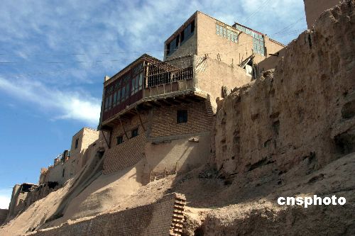 地處新疆南疆的喀什,是中國著名歷史文化名城。在喀什噶爾老城東南端地勢最高的黃土高崖上,有一處高臺維吾爾民居,已有五六百年歷史。該民居長達數(shù)百米,現(xiàn)有居民603戶,人口2450多人,全都為維吾爾族。相傳它早在兩千多年前就己存在。圖為二○○五年盛夏七月,高臺民居一角。 作者:田地