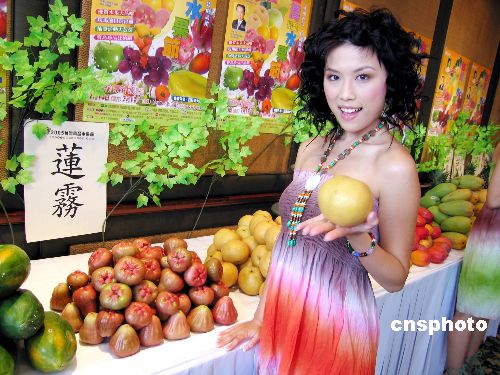 7月14日,臺灣農(nóng)業(yè)策略聯(lián)盟發(fā)展協(xié)會與多個農(nóng)貿(mào)團(tuán)體在香港舉行“臺灣精品水果品嘗博覽會”,向香港市民推介臺灣豐富的水果資源。圖為模特展示臺灣優(yōu)質(zhì)新鮮水果。作者:洪少葵