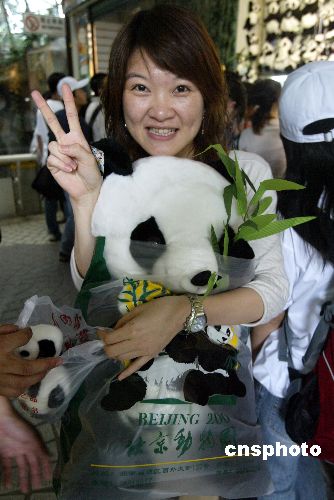 臺灣東海大學的李姓女生進了熊貓館后,迫不及待地向熊貓房的玻璃罩跑去,手里拿著照相機拍個不停。“以前只是在電視上看到熊貓,這里的熊貓顯得很懶,而且茸毛有點臟!彼M芾韱T能每天給熊貓洗澡。臨走時,她還選購了一只玩具熊貓,并告訴記者,要把玩具擺在床前,每天都能看到。