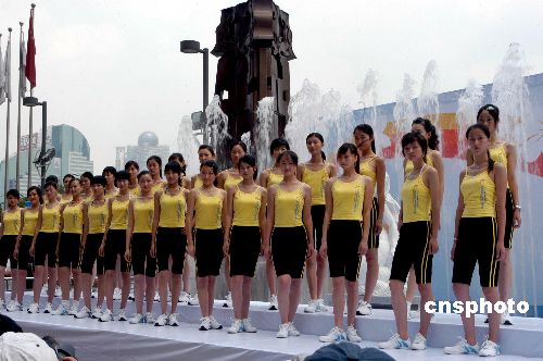 七月十六日,經(jīng)過兩個月的報名和海選,第四屆南方新絲路模特大賽在廣州正佳廣場舉行模特訓(xùn)練營開營儀式。圖為六十多位通過海選的佳麗集體亮相。作者:劉衛(wèi)勇