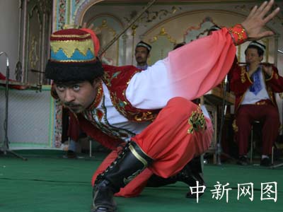 圖為疏附縣文工隊(duì)的歌舞演員在表演.