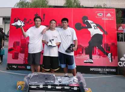 中新網(wǎng)7月25日電 7月24日下午,北京奧體中心室外籃球場,2005阿迪達(dá)斯街球營第一周北京地區(qū)周冠軍新鮮出爐!鞍雵崱标(duì)以2380的周積分贏得了這一榮譽(yù),并獲得價(jià)值10,000元人民幣的阿迪達(dá)斯運(yùn)動(dòng)裝備。更令人羨慕的是,該隊(duì)將與第二、第三周的周冠軍一起,爭奪街球營唯一的“麥蒂隊(duì)”資格。而最后的勝出者,將于代表北京街球少年,與8月底來訪北京的麥蒂進(jìn)行面對(duì)面的對(duì)抗。