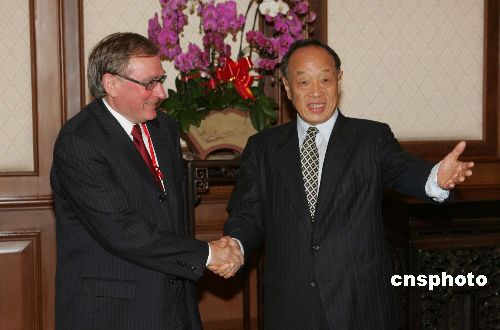中國(guó)外交部長(zhǎng)李肇星七月二十五日在北京釣魚臺(tái)國(guó)賓館會(huì)見并宴請(qǐng)前來出席朝核問題六方會(huì)談的俄羅斯副外長(zhǎng)阿列克謝耶夫。作者:毛建軍