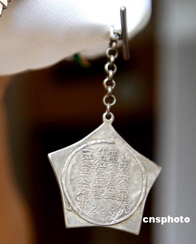 | 7月29日,杭州一居民家中發(fā)現(xiàn)了一枚非常珍貴的“紅星獎(jiǎng)?wù)隆,?jù)主人介紹這是老革命龍潛將軍的遺物。據(jù)說(shuō)在當(dāng)時(shí)獲得過(guò)“紅星獎(jiǎng)?wù)隆钡娜,萬(wàn)一犯了錯(cuò)誤,可免于一死。它是中華蘇維埃中央革命軍事委員會(huì)為表彰有特殊功勛的紅軍指戰(zhàn)員頒發(fā)的。紅星獎(jiǎng)?wù)轮辉?933年和1934年“八一”建軍節(jié)時(shí)頒發(fā)過(guò)兩次,非常珍貴。紅星獎(jiǎng)?wù)碌幕拘螤钍堑滓r由兩枚五角星交錯(cuò)而成的星花,中間由五星和禾穗組成的圓形圖案,五角星與禾穗之間標(biāo)有“紅星章”三字。周恩來(lái)、朱德、彭紹輝、楊得志等都獲得過(guò)“紅星獎(jiǎng)?wù)隆。作者:宋健?object align="left" classid="clsid:D27CDB6E-AE6D-11cf-96B8-444553540000" codebase="http:///pub/shockwave/cabs/flash/swflash.cab#version=5,0,0,0" height="250" width="350">