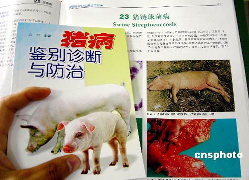 | 7月26日,針對四川資陽市、內(nèi)江市資中縣發(fā)生豬鏈球菌病疫情,農(nóng)業(yè)部專家組成員、中國工程院院士陳煥春稱,豬鏈球菌病可以防治。目前有關(guān)部門篩選了18種高敏抗生素如青霉素G、先鋒霉素等,積極防治豬鏈球菌病,已取得了一定療效。廣東正生產(chǎn)針對豬鏈球菌病的特效疫苗,不久后將進入四川資陽市、內(nèi)江市資中縣進行防治。據(jù)悉,豬鏈球菌病屬于國家規(guī)定的二類動物疫病,是一種人畜共患的傳染病。鏈球菌分布廣泛,常存在于健康的哺乳動物和人體內(nèi),在動物機體抵抗力下降和外部環(huán)境變化的誘導(dǎo)下,會誘發(fā)動物和人發(fā)病。目前沒有證據(jù)證明豬鏈球菌可以通過人的消化道感染人。圖為湖北宜昌市新華書店內(nèi),讀者在查看有關(guān)豬鏈球菌病防治的讀物。作者:劉君鳳