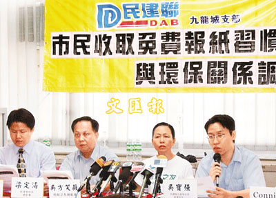 香港民建聯(lián)建議,在派發(fā)報紙的地點(diǎn),如地鐵站及鐵路站內(nèi)增設(shè)回收箱,在免費(fèi)報章上印上呼吁的字句,并增設(shè)廣播,增強(qiáng)市民將閱后報章放入回收桶的意識。同時,進(jìn)一步研究調(diào)節(jié)版面,減少用紙的可能性。