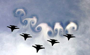 中新網(wǎng)8月1日電 據(jù)法新社報道,7月30日,俄軍在距離莫斯科40公里的一個城鎮(zhèn)舉行了航空表演。圖為俄空軍米格29戰(zhàn)機(jī)在空中表演,這次活動是為了紀(jì)念第二次世界大戰(zhàn)而舉行的。(春風(fēng))