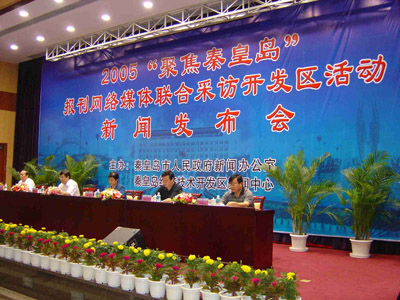 中新網(wǎng)秦皇島8月2日電 由中新網(wǎng)、人民網(wǎng)、中廣網(wǎng)等媒體參加的2005“聚焦秦皇島”報(bào)刊網(wǎng)絡(luò)媒體聯(lián)合采訪開(kāi)發(fā)區(qū)活動(dòng)新聞發(fā)布會(huì),今日上午,在秦皇島開(kāi)發(fā)區(qū)管委會(huì)報(bào)告廳召開(kāi)。報(bào)刊網(wǎng)絡(luò)媒體秦皇島開(kāi)發(fā)區(qū)行正式啟動(dòng)。