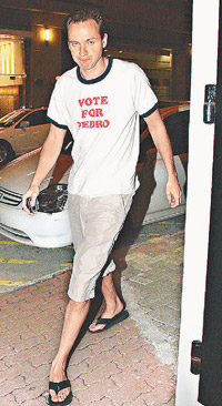 另一邊,“老外新歡”于前晚九時左右,由所住大廈的走火通道極速步出,然后截的士離去,守候記者未能跟上,傳媒猜測他會否到半島酒店會合柏芝,不過“老外”所乘之的士后來折返兜客,司機(jī)向記者透露“老外”于中環(huán)云咸街下車,至十時四十分,一身街坊look,穿上T恤短褲配拖鞋的“老外”由正門步行回家,他回家時間與柏芝極為合拍,面對傳媒拍照他亦神態(tài)自若,還與管理員以普通話打招呼,難怪他可以當(dāng)柏芝的英文老師!不過記者問他:“同柏芝談戀愛多久了?”他卻不發(fā)一言就急步入大廈。昨晚七時,他召了部的士由寓所出發(fā)往機(jī)場,沿途欲擺脫記者追訪不果,抵達(dá)機(jī)場后,記者問他是否跟柏芝一同出埠及去哪?他一概不回應(yīng)就入閘離開。但柏芝經(jīng)理人表示柏芝人在香港,在家中休息。