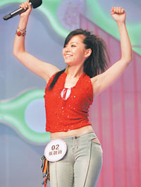 張靚穎目前是超女的熱門人物,她的外貌也最受推崇,和葉一茜一樣,兩人都是長(zhǎng)發(fā)披肩的標(biāo)準(zhǔn)美女,笑容也很甜美。